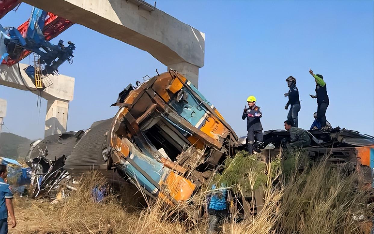 泰国总理阿努廷于周二晚间紧急赶赴一场致命的铁路事故现场。截至当时,这起发生在9时05分的撞击事故已确认造成32人死亡。一台正在吊运混凝土梁的起重机倒塌,砸中了泰国国家铁路局一列正在高速行驶的密封空调列车,随后引发爆炸和火灾。