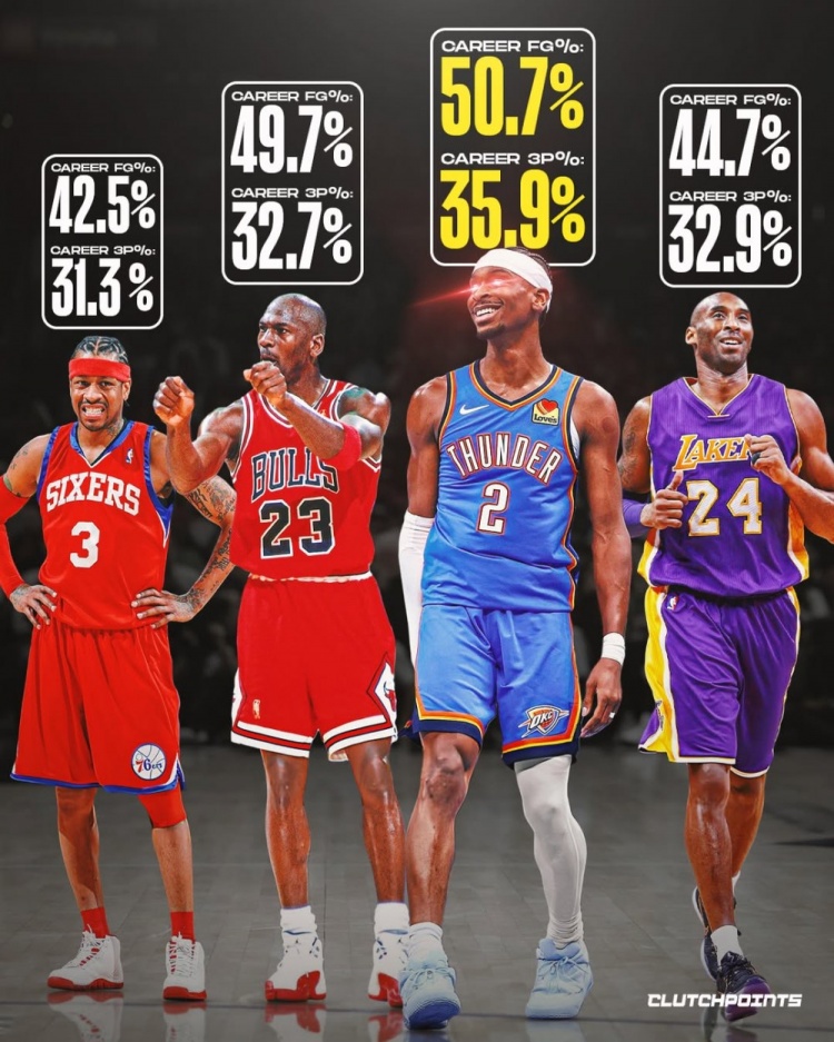 每名球员头顶最上方为生涯命中率 下方为三分命中率