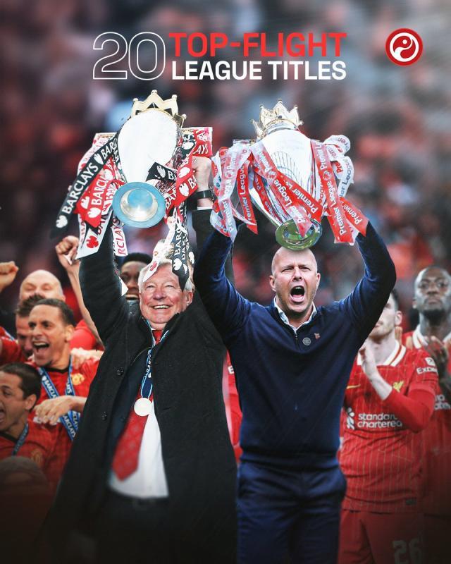 体坛周报全媒体报道 【20】利物浦夺得队史第20座顶级联赛冠军(老英甲18+英超2),追平曼联(老英甲7+英超13)的纪录。 【1】斯洛特成为首位赢得英超冠军的荷兰籍主教练;范戴克成为首位以队长身份夺得英超冠军的荷兰球员;索博斯洛伊成为首位夺得英超冠军的匈牙利球员。 【1】利...